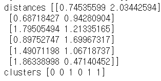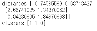 # 각 데이터 포인트와 클러스터 중심 사이의 거리 계산