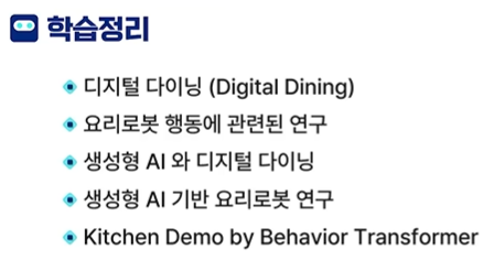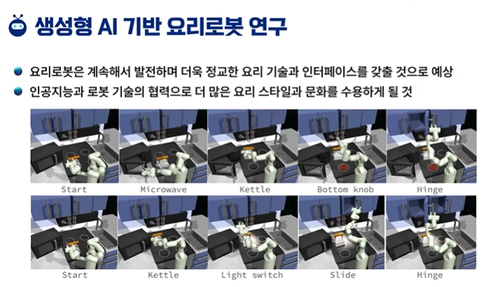 생성형 AI기반 요리로봇, AI기반 행동 생성 기법을 설명할 수 있게 됩니다.