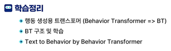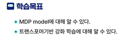 강의를 통해서 여러분은 강화학습, 트랜스포머 기반 강화학습, 행동 생성용 트랜스포머를 설명할 수 있고,