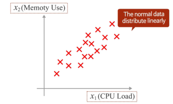 정상 데이터는 선형적인 분포를 보이고 있다.