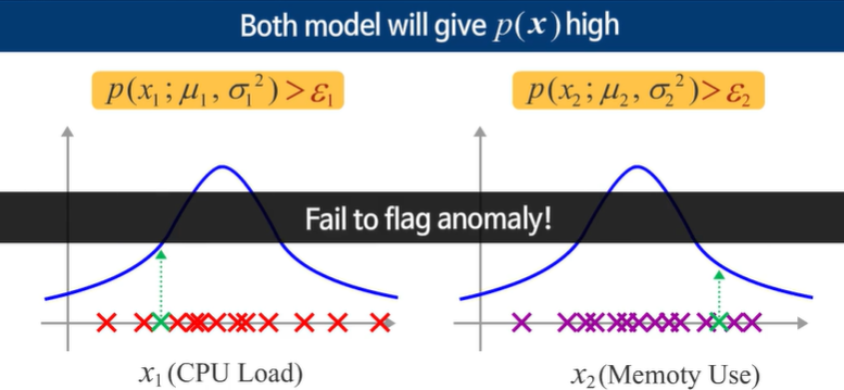 비정상 데이터지만 정상 데이터 분포 안에 들어가 있다. -> 특징 차원이 너무 낮다.