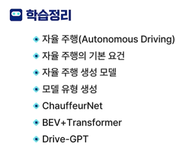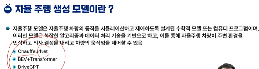 이번 강의에서는 자율주행 생성 모델, 자율주행 생성 모델 학습, 자율 자동차 행동 생성,