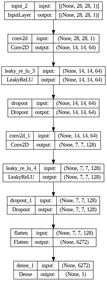 위의 모델은 판단하는 네트워크이다. 마지막에 0(생성 데이터)과 1(실제 데이터)로 판단하게 된다.