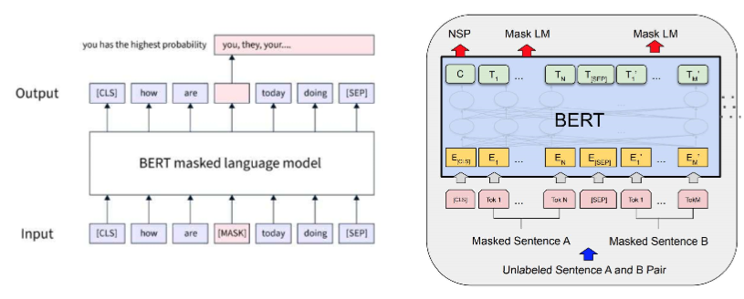 - Masked Language Model (MLM): 입력 시퀀스의 15% 단어를 마스크하여 예측