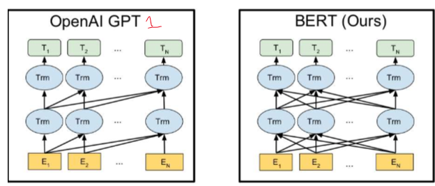 - BERT: 양방향 모델로, 두 가지 학습 목표 설정