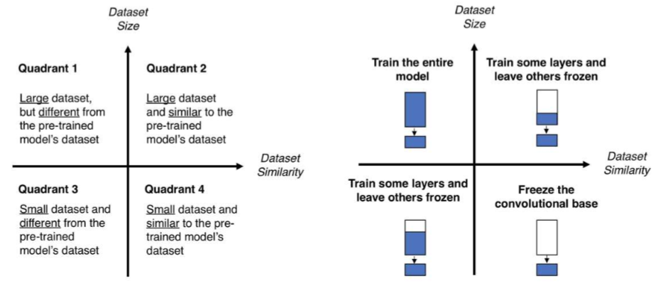 데이터 양, 유사도에 따라 fine-tuning할 때 weight의 변화를 조절한다.