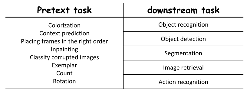 - 해설: 사전 학습 과제는 'pretext task'라고 합니다.