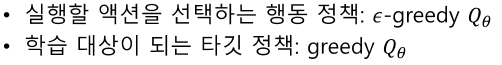 - (\epsilon)-greedy는 액션을 선택하는 행동 정책이다.