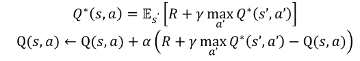 - 벨만 최적 방정식과 테이블 업데이트 수식을 뉴럴넷으로 확장.