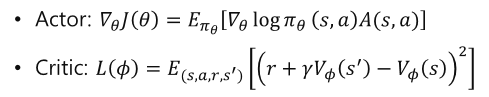 - A3C: 병렬 학습으로 학습 속도 향상, 동기화 오버헤드 발생 가능