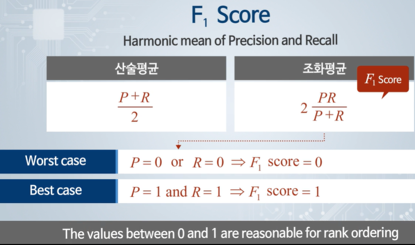 두 지표의 평가는 평균으로 하지 않고, f1 score를 사용한다.