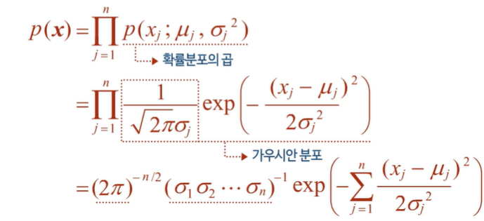 다변수 가우시안을 통해 일반적이고 이상 데이터를 찾아내기 어려운 경우에도 적용 가능하고, 독립이라고 가정할 경우도 특이 데이터를 도출 가능하다.