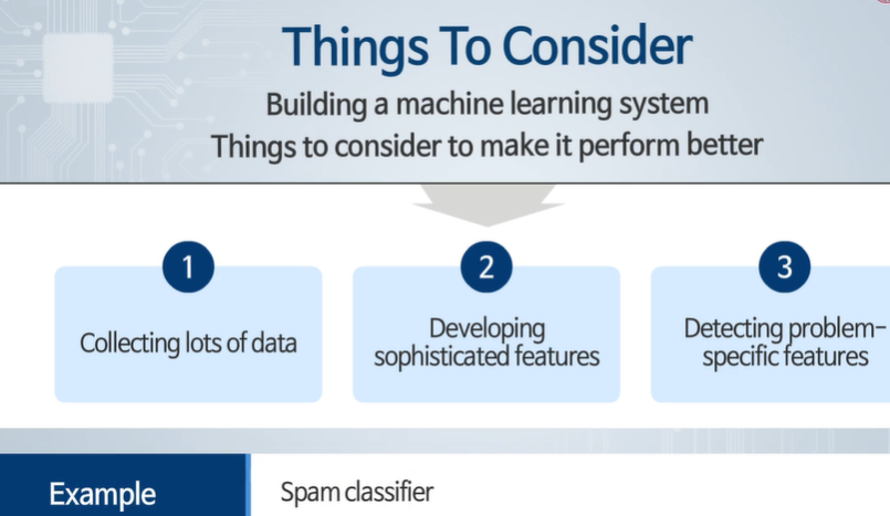 따라서, 머신러닝 시스템을 설계할 때 가장 먼저 고려해야 할 사항은 "접근방식 선택하기 (지도학습 / 비지도학습)"입니다.
