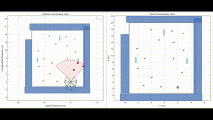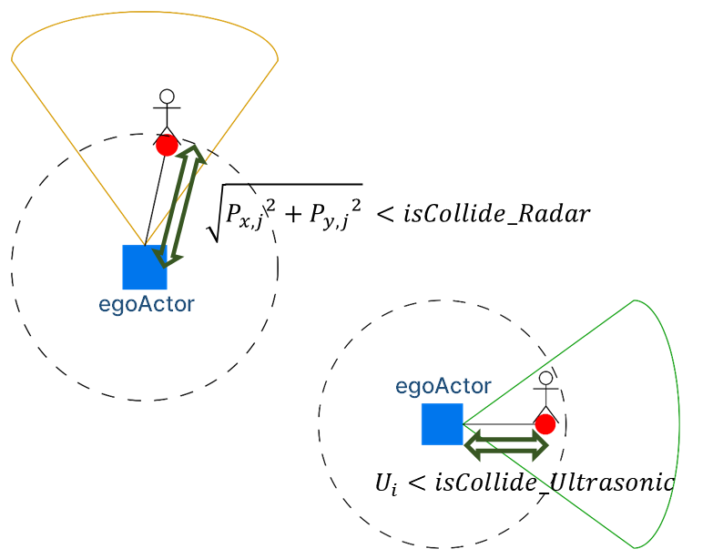 빨간색이 Radar이고, 초록색이 UltraSonic 센서 입니다.