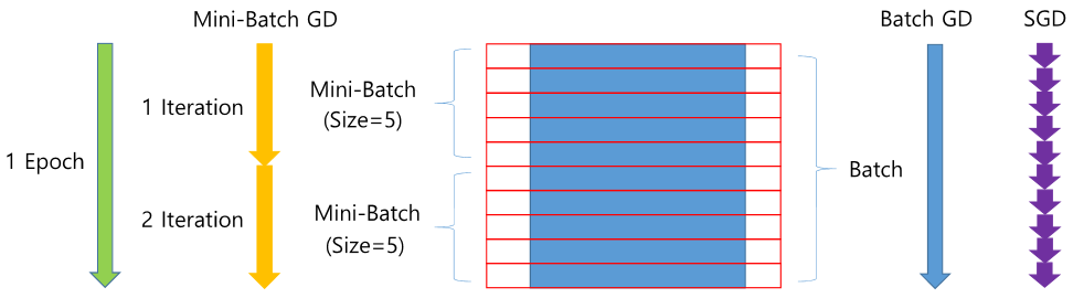 Mini batch - Batch를 batch size로 나눈 작은 데이터 뭉치