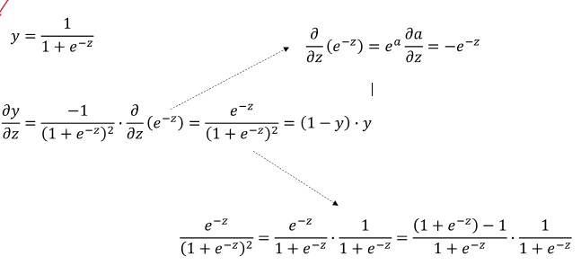 Sigmoid식은 위에 써져있는 식으로 미분하는 방식은 아래와 같다.