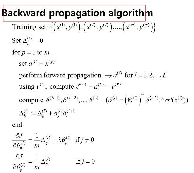 Cost function을 미분하여 기울기를 구하고, 딥러닝의 파라미터 즉 theta를 오차가 감소하는 방향으로 업데이트한다.