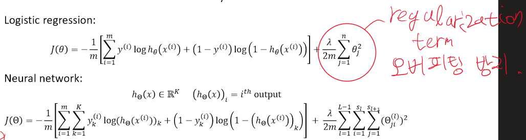 계산하는 방식은 Logistic regression과 비슷하나 Cost function은 마지막에서 구한다는 것, Decision boundary가 비선형적 이라는 차이가 있다.