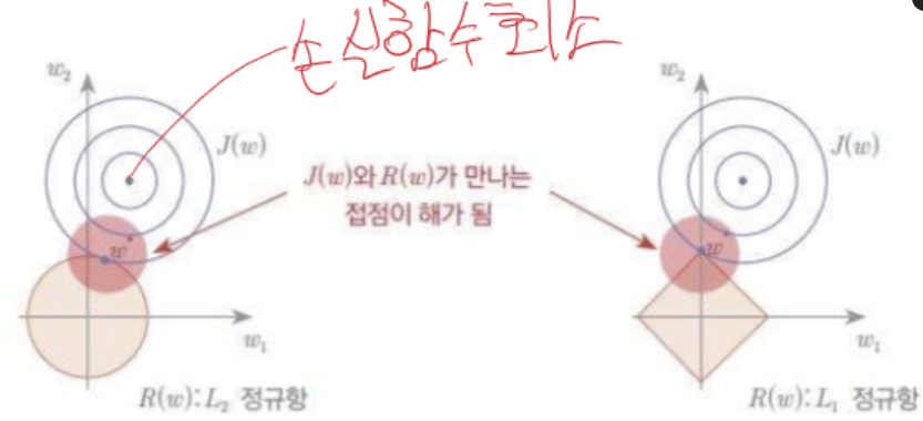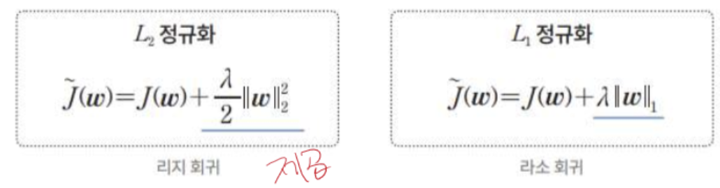 이렇게 정규화 항은 loss function뒤에 붙이며 파라미터가 커지지 못하도록 막는다.