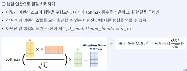 여기서 q,k,v를 나눠서 진행하면 Multi-Head Attention이 진행된다.