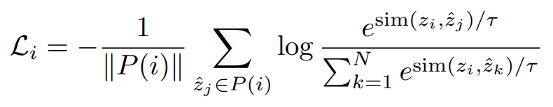 여기서 sim(zi,zj)는 두 벡터의 코사인 유사도를 나타내고, τ는 온도 매개변수입니다.