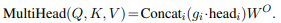 Transformer의 multi-head attention 메커니즘은 다음과 같은 수식을 통해 표현됩니다:
