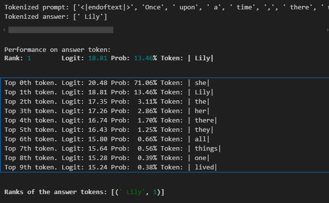 transformer_lens.utils.test_prompt는 모델이 하나의 토큰을 추론할 수 있는지를 확인하는 데 도움이 됩니다.