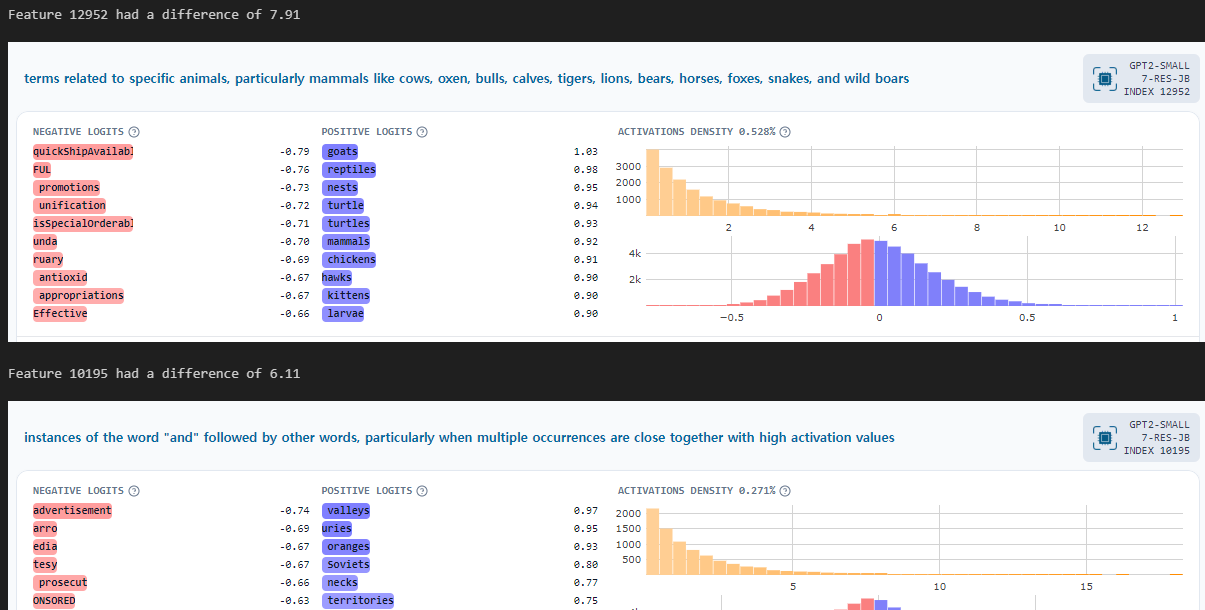 - Gemma SAEs (gemma-2b-res-jb) (0,6) <- Neuronpedia에서 제공되며 좋습니다. (현재 12 / 17은 그렇게 좋지 않습니다).