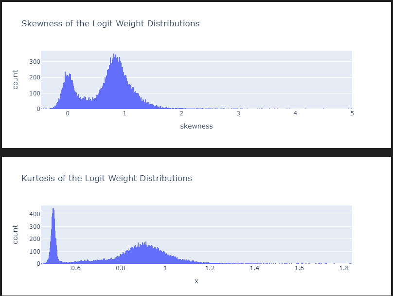부록 결과: 모든 레이어에 대한 Logit 가중치 분포 통계