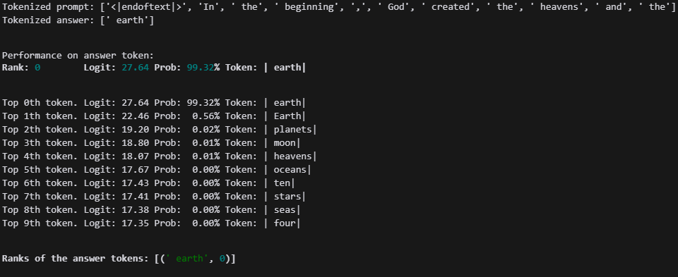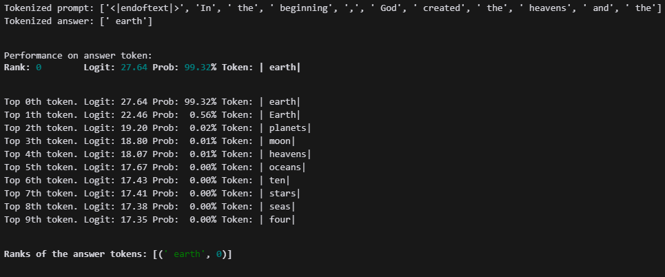 # Show that the model can confidently predict the next token.