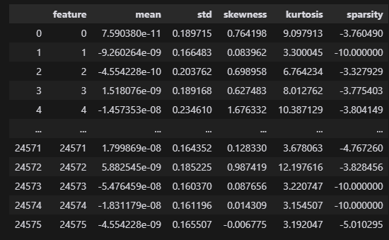 # 또한 편의상 HF에 저장된 특징 희소성도 반환됩니다.