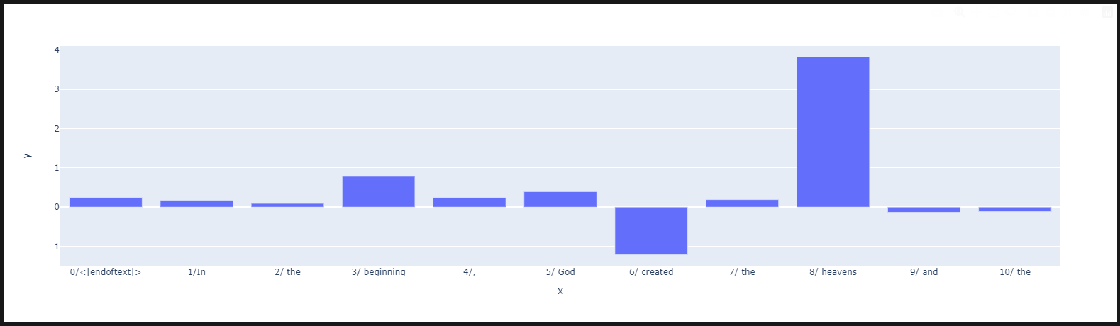 단어마다 양수, 음수가 나뉘어져 있고, 얼마나 활성화 되어있는지도 볼 수 있습니다.