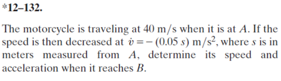 비슷한 문제이나 여기는 가속도가 위치에 관련된 식으로 나왔으니 a ds = v dv로 푼다.