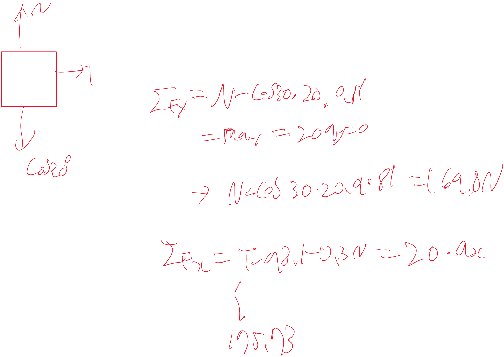 수직항력, 중력 가속도, 스프링의 합은 0이어야 하고, 스프링과 앞으로 끄는 힘은 ma와 같아야 한다로 구할 수 있다.