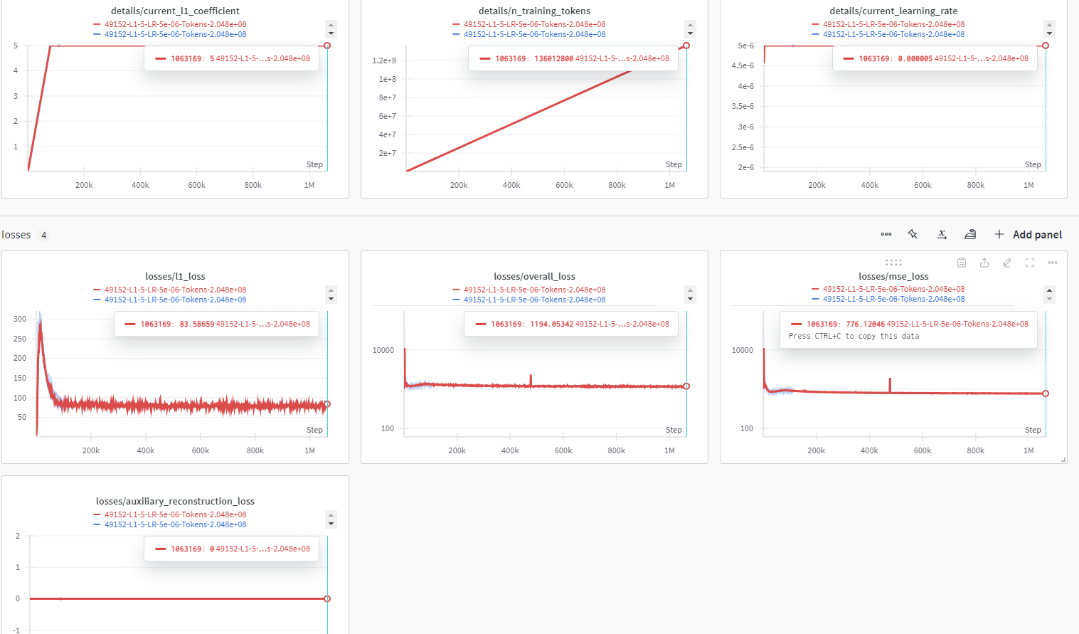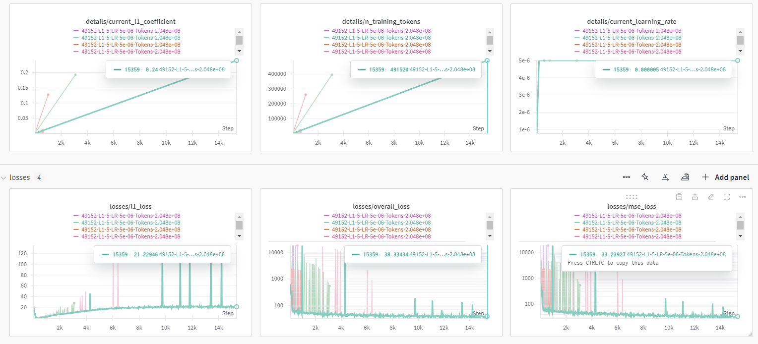위에서 토큰 수, 학습률과 l1 계수 확인 가능합니다.