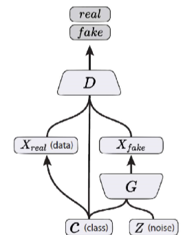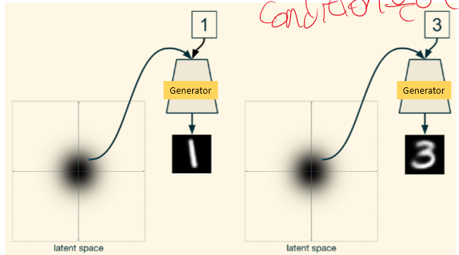이전 GAN에선 내가 무슨 데이터를 만들지 알려주지 않는다. 여기선 내가 무엇을 만들지 one hot을 통해 알려준다.