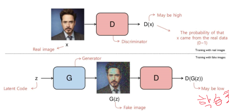 여기선 descriminative model(판단 모델) 과 generative model(생성 모델) 두개를 사용한다.