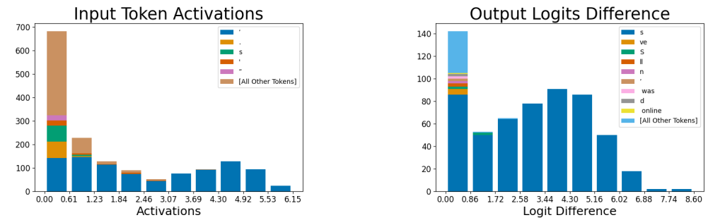 - 완전한 복원 불가능: 희소 자동 인코더를 사용하여 학습된 피처들로 신경망의 모든 정보를 복원하지는 못했습니다. 재구성 손실이 남아 있으며, 이로 인해 복원된 활성화가 원래의 활성화를 완벽하게 대체하지 못했습니다.