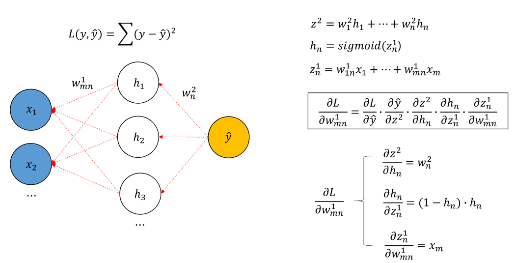 이제 activation funcion(sigmoid, ReLU)와 여러 layer가 있는 NN에선 위와 같은 방식으로 backpropagation이 진행된다.