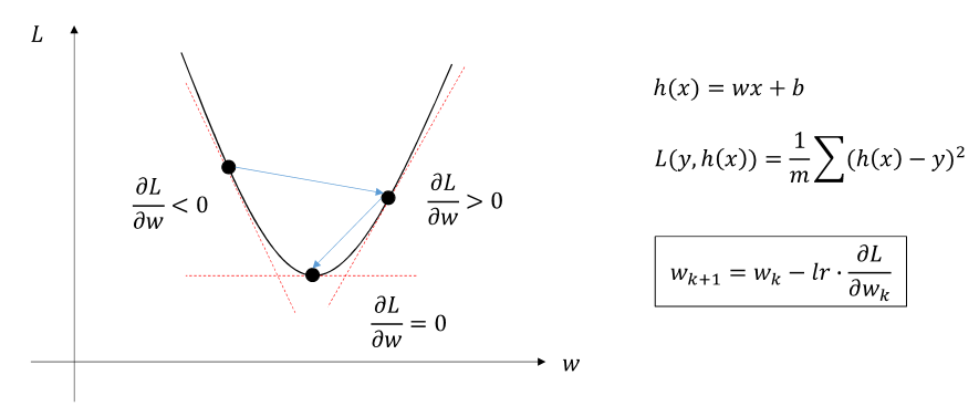 그럼 저렇게 구한 미분값을 통해 학습률을 곱해서 원래의 파라미터에 빼게 된다.