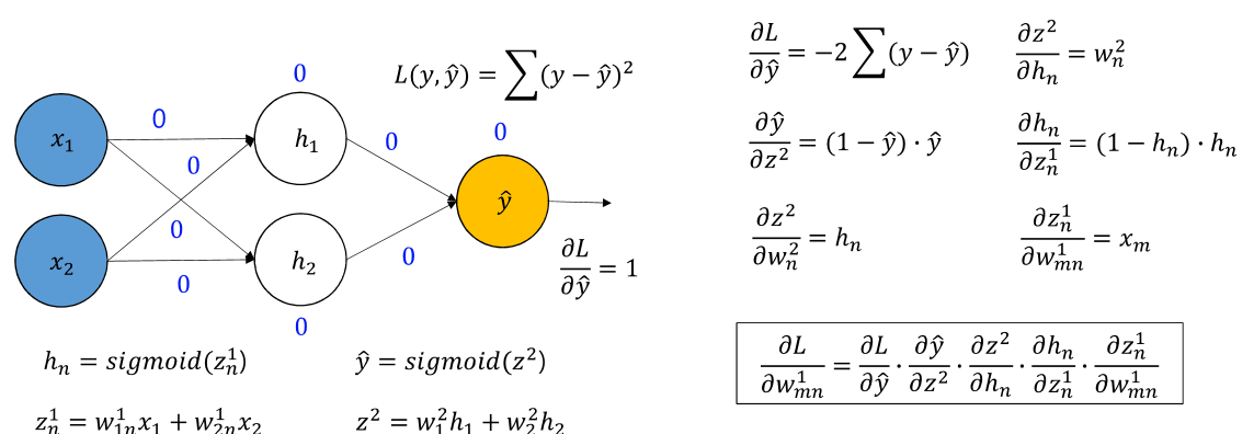모든 weight를 0으로 두면 input 빼고 모든 값들이 0이 되기 때문에 학습이 정상적으로 이루어 지지 않는다.