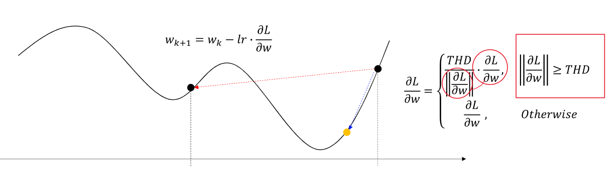 기울기 폭주는 너무 큰 기울기 값이 들어갔을 때 발생한다. 이것은 학습이 불안정해 지도록 만들기 때문에 피해야 한다. 그래서 우리는 Gradient Clipping을 사용하여 임계값(THD)를 설정하여 THD를 넘지 못하도록 만든다. 그리하여 학습은 약간 느릴 수 있어도 안정적인 효과를 가져올 수 있게 된다.