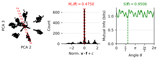 - (3) 특징 재구성: 각 군집에 대해 활성화된 사전 요소들만 남겨두고 나머지는 제거하여, 특정 다차원적 특성에 해당하는 히든 상태의 재구성을 시도합니다. 이 과정에서 재구성된 히든 상태를 PCA 분석 등을 통해 2차원 평면으로 시각화함으로써, 원형(circular) 패턴을 확인할 수 있습니다.