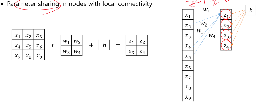CNN의 특징으로 파라미터가 공유되어 학습할 파라미터가 적은 것이다.