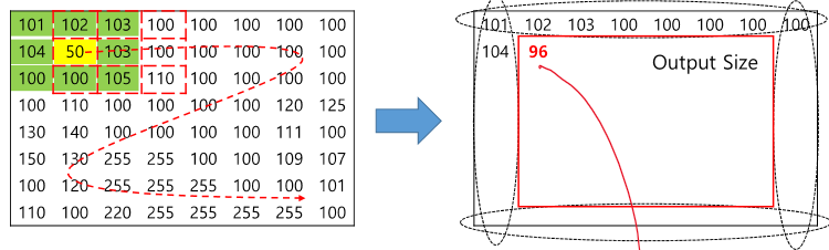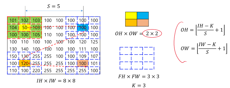 듬성듬성 걸어가면서 이 layer의 out을 줄여준다.