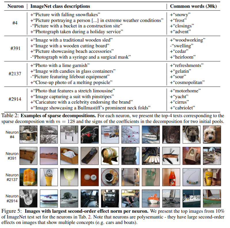 그리하여 이 논문에서는 스파스 분해 기법을 통해서 뉴런의 2차 효과를 텍스트 표현으로 분해하여 설명하려고 한다.