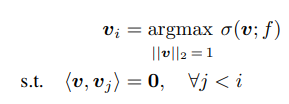 - 초기 방향 v1: influence σ(v;f)를 최대화하는 방향을 찾음.