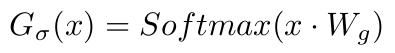 기본적으로 MoE 레이어의게이트 네트워크는 입력에 따라 전문가들의 가중치를 산출하며, 각 입력이 특정 전문가들만을 통과하게 합니다. 이를 위해 일반적으로 입력에 가중치 행렬Wg를 곱하고 소프트맥스 함수를 적용해 활성화될 전문가들의 확률 분포를 얻습니다.