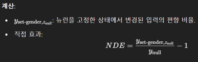 - 특정 뉴런이 성별 편향에 얼마나 중요한 역할을 하는지 평가.