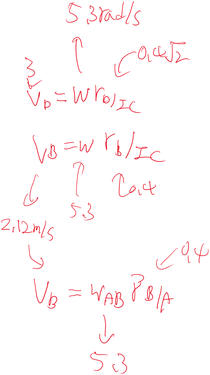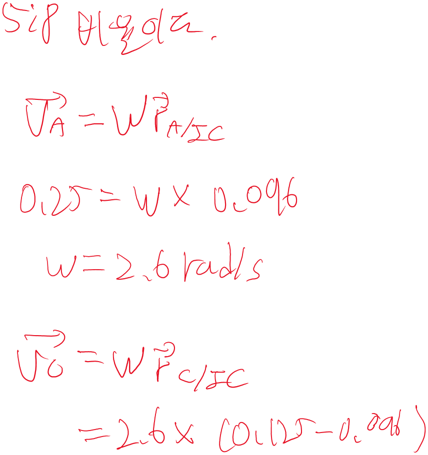 첫 번째 사진에서 VA=0인 이유는 구름 조건(rolling without slipping) 때문입니다. 바퀴가 미끄러지지 않고 굴러가는 상황에서는 바퀴와 지면이 접촉하는 지점(A점)의 순간 속도는 항상 0이 됩니다. 이 이유는 다음과 같습니다: